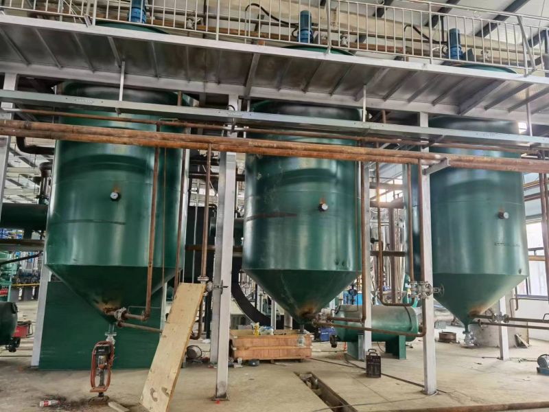 油脂精煉脫臭在任何情況下,蒸餾引起的損耗均取決于脫臭時間、通氣速率、操作壓力和溫度、油脂中游離脂肪酸和不皂化物的含量以及甘油三脂肪酸酯的組分等因素。在汽提脫臭過程中,有相當數量的油脂是由于飛濺在汽提蒸汽中而損失的。因此,脫臭總損耗包括蒸餾損耗和飛濺損耗。不同的油脂、設備以及不同的操作條件,其脫臭總損耗是不盡一致的。汽提脫臭過程中,低分子的醛類、酮類以及游離脂肪酸容易蒸餾出來,隨著脫臭過程的加深,油脂內原有的游離脂肪酸經過脫臭后幾乎完全被除去,因此蒸餾損耗硬包括油脂脫臭前的游離脂肪酸的含量。此外,根據反應方程可知,汽提蒸汽不可避免地要引起部分油脂的水解,因油脂水解所生成的這部分脂肪酸,也構成了蒸餾損耗。根據經驗,當游離脂肪酸含量降低至0.015%-0.03%時,游離脂肪酸的脫除速率與裂解生成的速率即達到平衡。蒸餾損耗還包括油脂中存在的甾醇和其他不皂化物,盡管這部分物質較游離脂肪酸難于揮發,但是在脫臭餾出物卻占有一定的比例,它們構成的蒸餾損耗取決于脫臭操作條件。以大豆油為例,在較高的脫臭溫度下,甾醇及不皂化物蒸餾脫除率約為60%,而在一般操作條件下脫出率較低。